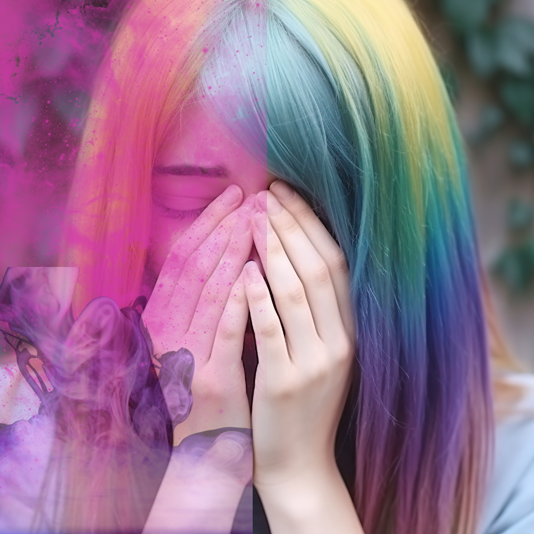 Esa sensación de no ser uno mismo al 100%, porque estamos en la búsqueda de quienes somos, podemos sentir que estamos dentro de una nube en la que la niebla nos rodea, el mundo nos parece artificial, distorsionado, o ciertos sonidos o situaciones pueden parecer más grades de lo que realmente son, Hay una sensación muy extraña con el tiempo, pasa demasiado rápido o demasiado lento. Estas sensaciones vienen unidas a los sentimientos de despersonalización.